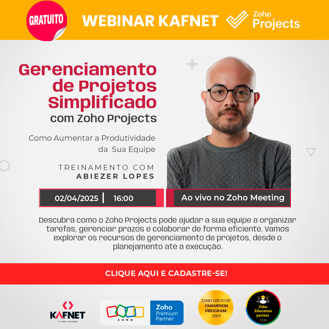 CategoriesNotícias 2 de abril de 202529 de outubro de 2025 kafnet25new Webinar: Gerenciamento de Projetos Simplificado com Zoho Projects Clique aqui para assistir ao treinamento online Navegação de PostPrevious post Webinar: Análises Poderosas com Zoho Analytics Next post Treinamento Zoho Creator Deixe um comentário Cancelar respostaO seu endereço de e-mail não será publicado. Campos obrigatórios são marcados com * Salvar meus dados neste navegador para a próxima vez que eu comentar. Publicar comentário